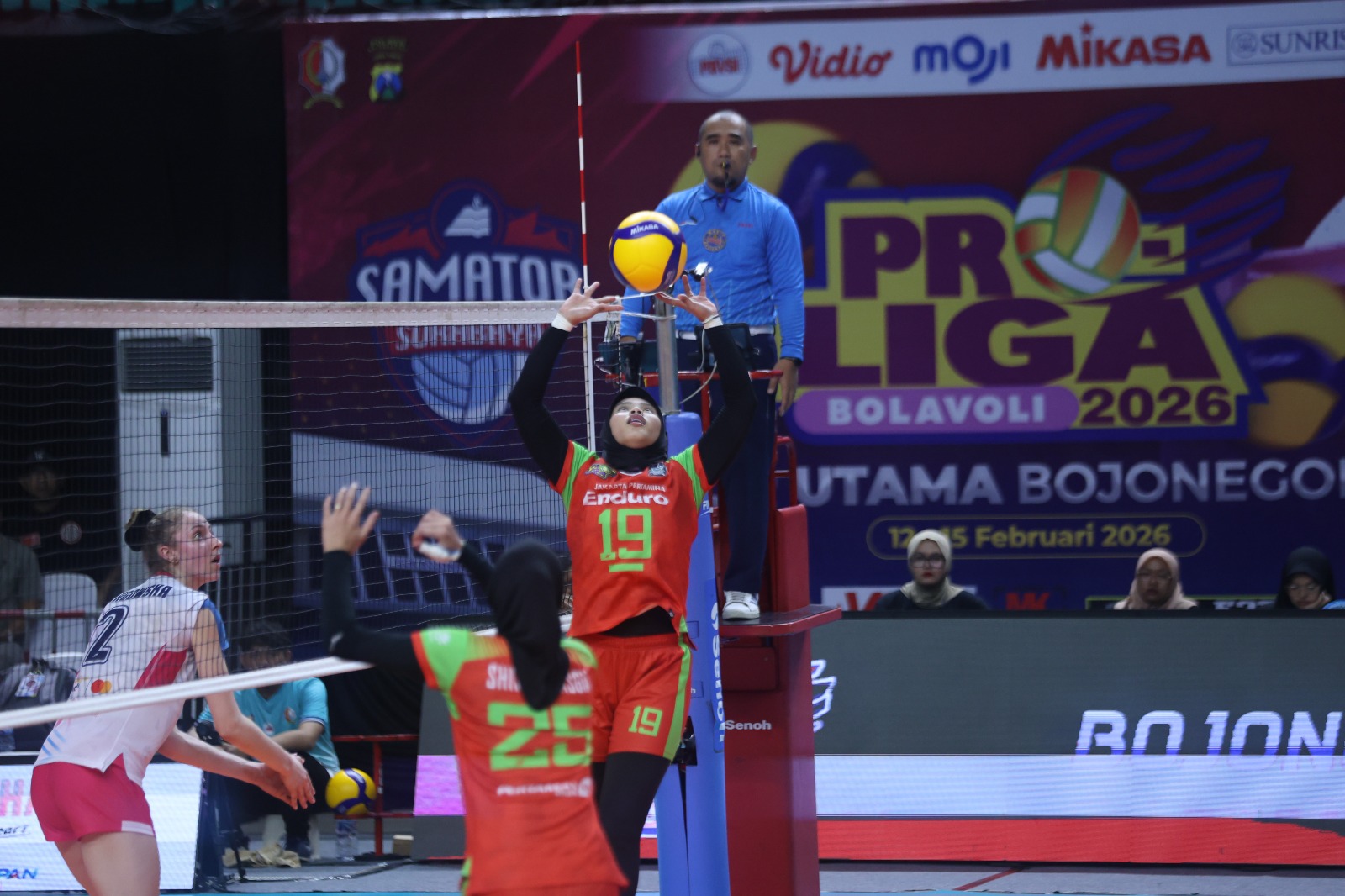 BOJONEGORO – Tim putri Jakarta Livin’ Mandiri membuka peluang lolos babak final four Proliga 2026 usai menumbangkan pemuncak klasemen, Jakarta Pertamina Enduro (JPE) 3-1 (25-12, 25-20, 15-25, 25-20) dalam lanjutan putaran kedua di GOR Utama, Bojonegoro, Jumat (13/2/2026).
