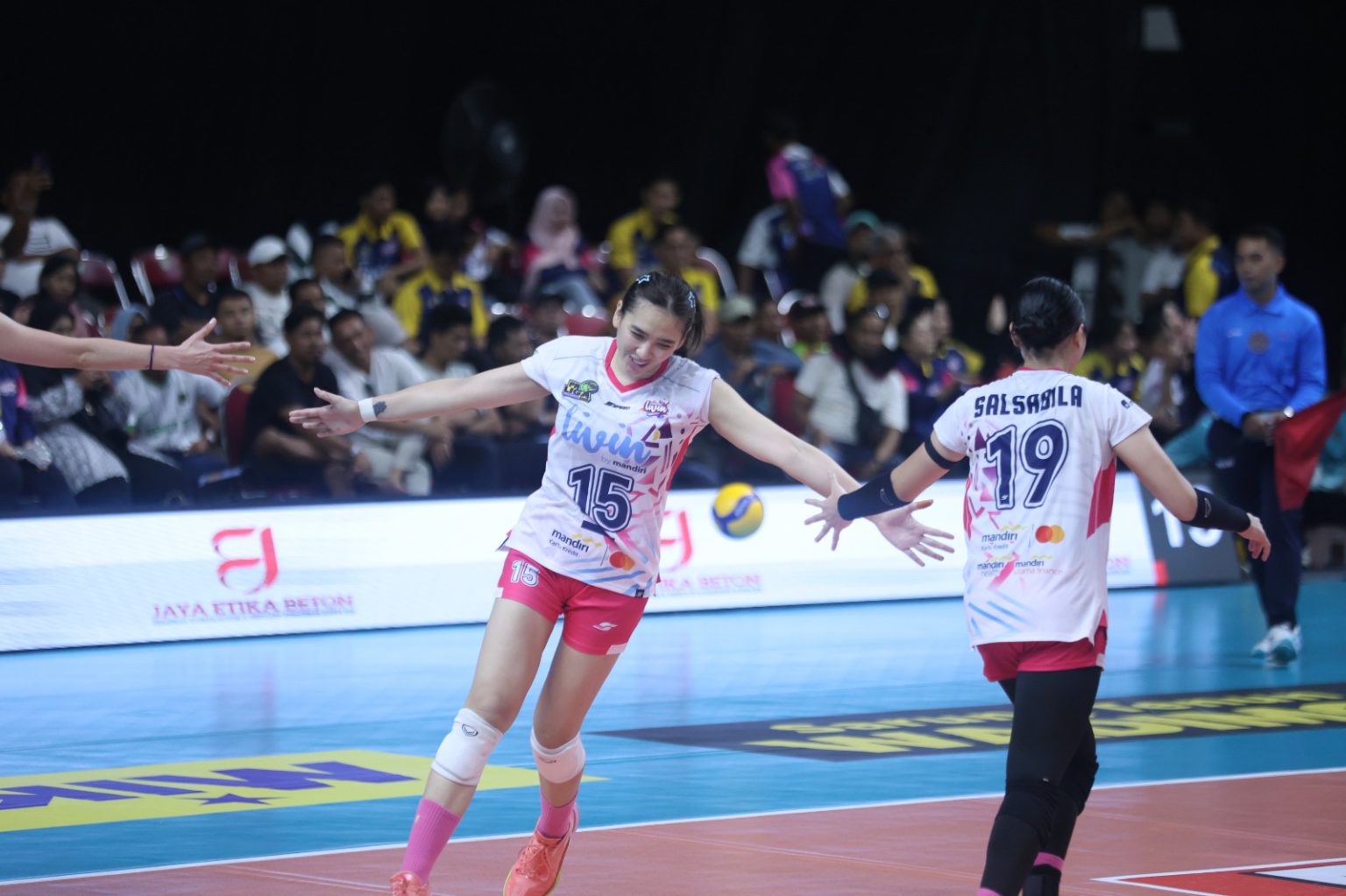 Salah satu pemain Livin’ Mandiri, Dian Pratiwi mengakui sedikit ada tekanan saat lawan bisa mengambil set ketiga, “Tapi kami pelatih meminta kami bermain lepas,” ujarnya.