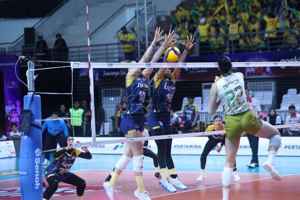 Sejak peluit awal dibunyikan, Livin’ Mandiri langsung tancap gas. Mengandalkan kombinasi senioritas Yolla Yuliana dan ketajaman duet asing Ana Bjelica serta Weronica Szlagowska, Livin Mandiri memimpin 8-5 di awal set.
