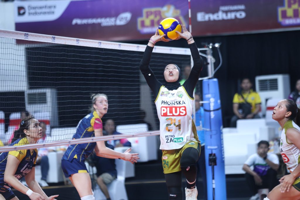 Momentum kemenangan di set ketiga sempat dibawa Phonska Plus hingga unggul 3-1 di awal set keempat. Namun, pengalaman Yolla Yuliana dalam menempatkan bola di area kosong lawan membuat Livin Mandiri berbalik unggul 11-9.