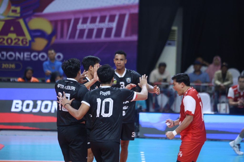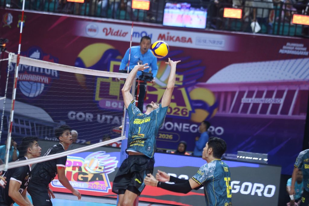 BOJONEGORO – Tim putra Surabaya Samator memastikan lolos ke babak final four Proliga 2026, usai menumbangkan Medan Falcona Tirta Bhagasasi dengan 3-1 (25-17, 25-23, 22-25, 25-17) dalam lanjutan putaran kedua di GOR Utama Bojonegoro, Minggu (15/2/2026) malam.